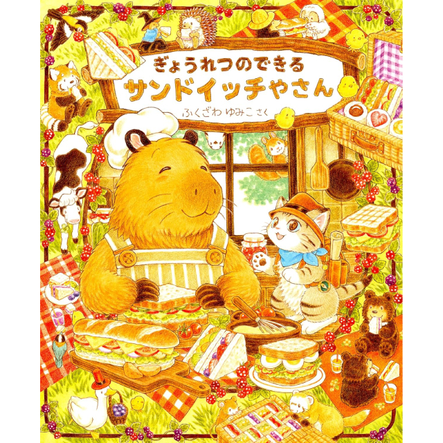 大人気!累計45万部のロングセラー、ぎょうれつのできるおいしい絵本シリーズ第9弾!ぐうぐう山へ冒険に出かけるこねこのココ。「カピバラさんも一緒に行こうよ!」と誘いますが、山登りの苦手なカピバラさんはお留守番。その代わりにこれを一緒に連れて行ってと、カピバラさんは、ココに4つの秘密のサンドイッチを用意してくれました。『まよったときのサンドイッチ』『ピンチのときのサンドイッチ』『キラキラほうせきサンドイッチ』『ともだちサンドイッチ』――。道中何かあるたび、ココは、一つずつサンドイッチの袋を開けていきます――。さあ、カピバラさんは一体どんな秘密のサンドイッチを用意してくれたのでしょうか?