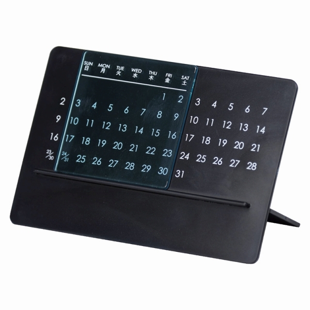 いつまでも使える万年カレンダー。毎月付属の曜日用プレートをスライドさせれば何年先でも使用可能。