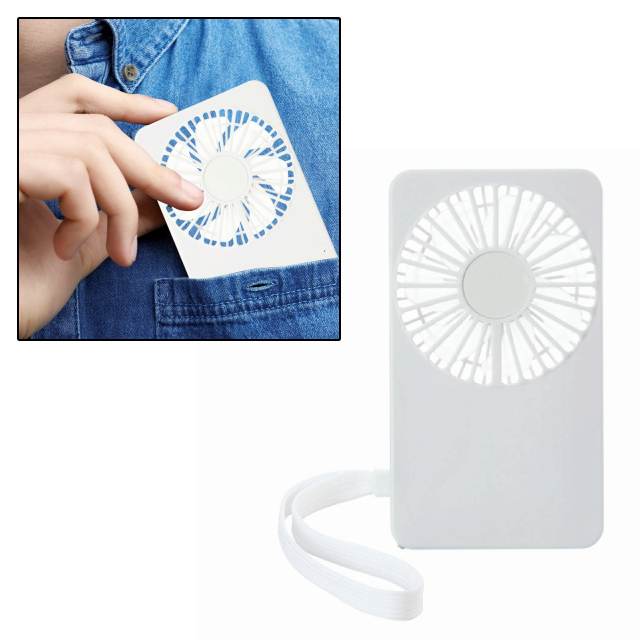 小さくて軽い、大風量なのに静音設計。持ち運びに便利なストラップ付。選べる風量が3段階。弱モードで連続運転は4H。ポケットにサクッと入るスリムカードファン。