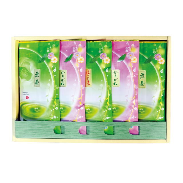 ■内容:煎茶(60g)・雁が音(70g)×各2、ほうじ茶(30g)×1■重量:約585g