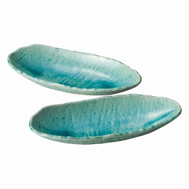 瀬戸焼 ブルー貫入 舟型鉢2P