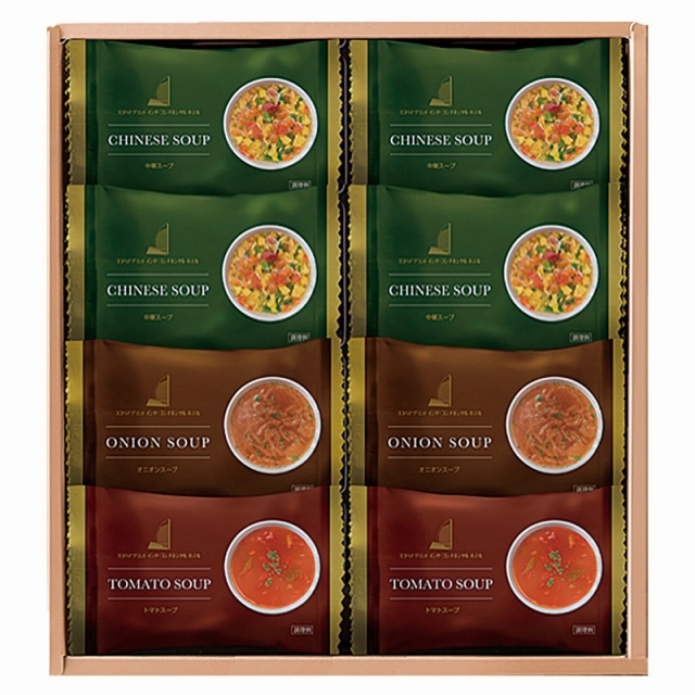 ■内容:中華スープ×4・トマトスープ・オニオンスープ×各2■重量:約285g■アレルゲン:卵、乳、小麦