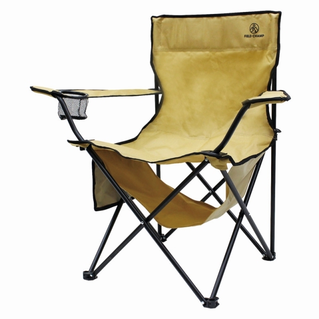 チェアリングに最適。座面下に荷物が置ける棚モック付き。小物を入れるのに便利なサイドポケット付き。便利なドリンクホルダー付き。耐荷重:約80kg・棚部約2kg