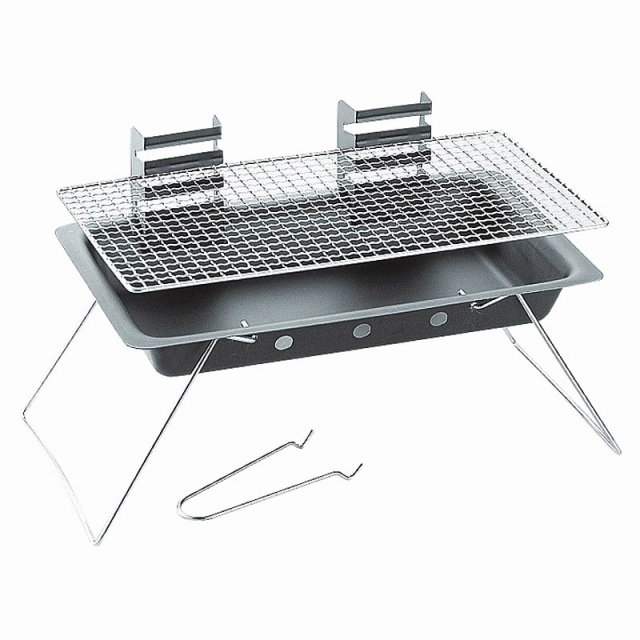 コンパクトに収納でき、持ち運びにも便利なバーベキューコンロです。網の高さを3段階で変えられ、火加減を調節できます。
