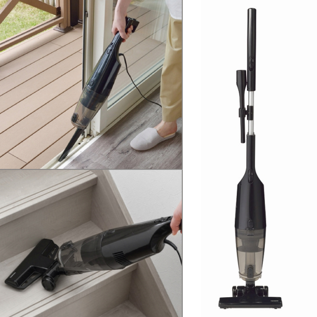 スティックパイプを外してハンディでも使える2WAY。楽ステ機能付きで簡単ゴミ捨て。紙パック不要だから経済的。ダストケース丸洗い可。お部屋のわずかなスペースで収納できる自立タイプ。使いやすいサークルハンドル採用。●集塵容量:約500ml