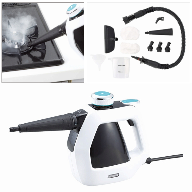 ■サイズ:本体(約115×265×207mm)・ストレートノズル・延長ホース・アングルノズル・窓用アタッチメント・ジョウゴ・メジャーカップ×各1、ブラシ×3、布カバー×2■材質:PP■重量:約2.3kg■AC100V-1000W■原産国:中国製