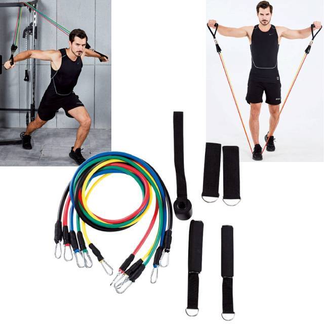 ■内容:トレーニングチューブ×5、グリップ・足首ストラップ×各2、ドアアンカー×1■材質:天然ゴムラテックス■重量:約720g■原産国:中国製