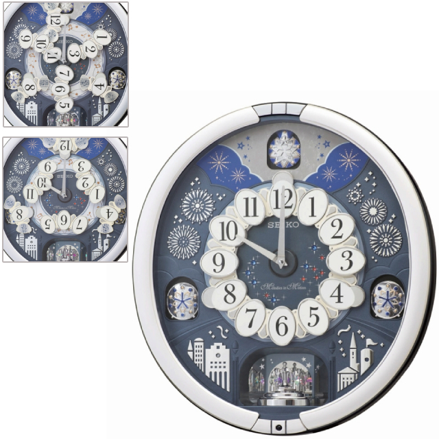 夜空に舞う花火をイメージした、幻想的なからくり時計。シルバーを基調とした優美な世界が広がります。○クォーツ時計○毎正時メロディ○音量調節○自動鳴り止め○回転飾り