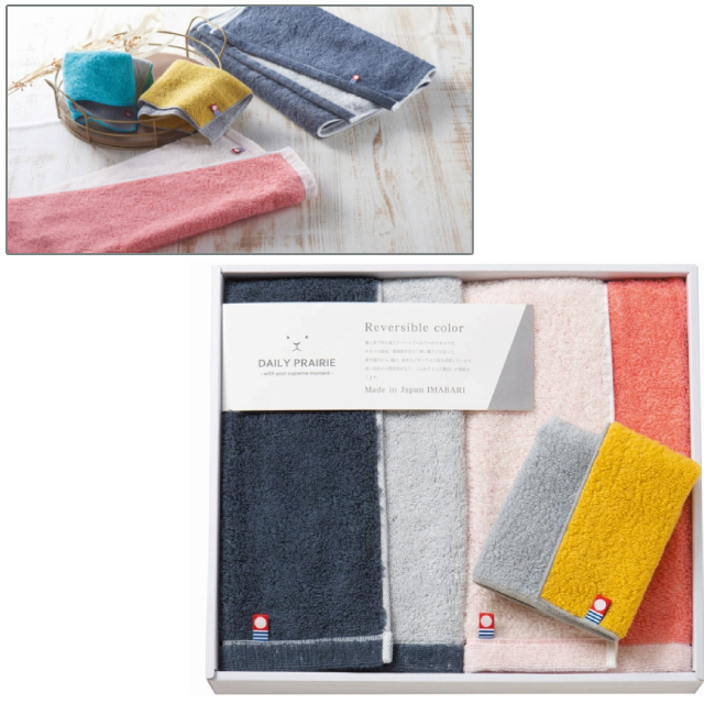 DAILYPRAIRIE リバーシブル フェイスタオル2P・タオルハンカチ1P