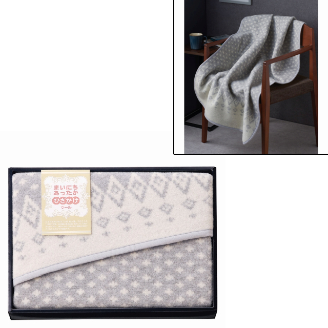 ■サイズ:ひざ掛け(約700×1200mm)×1■材質:ヨコ糸:ウール100%・タテ糸:ポリエステル100%■重量:約600g■原産国:日本製