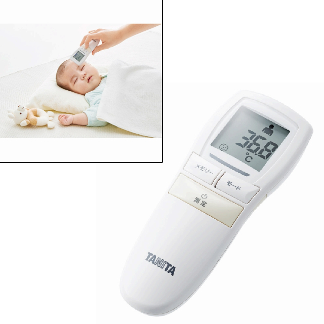 手軽に測れて、結果が見やすい体温計。■約1秒、おでこで計測する非接触体温計。体に触れずに測定できる■暗くてもみやすいバックライト付き大型表示■ミルクなどの温度(表面温度)も測定できる■体温の測定結果が38℃以上の場合、光と音とマークでお知らせ■過去の測定結果を30件までメモリー