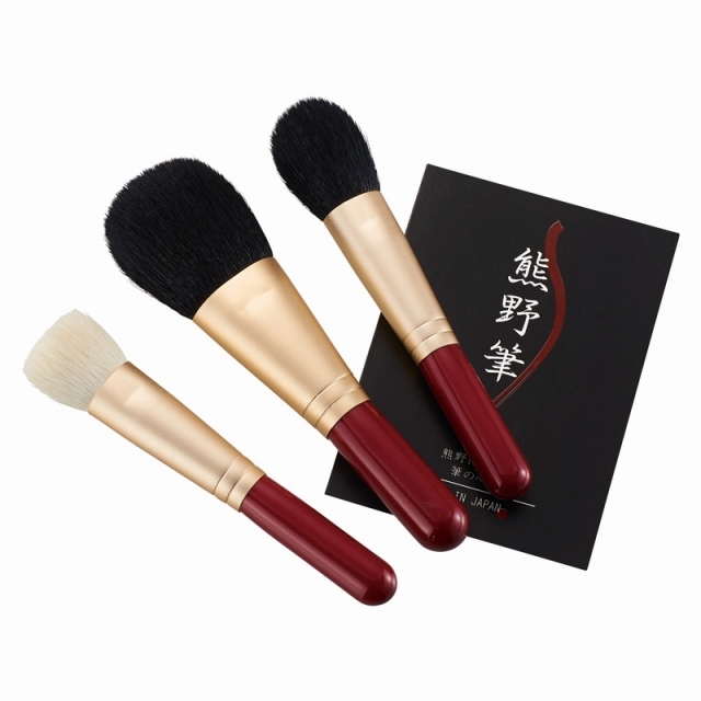 ■サイズ:フェイスブラシ(全長約140mm・毛丈約43mm)・チークブラシ(全長約130mm・毛丈約37mm)・リキッドブラシ(全長約118mm・毛丈約23mm)×各1■材質:山羊毛■重量:約85g■原産国:日本製