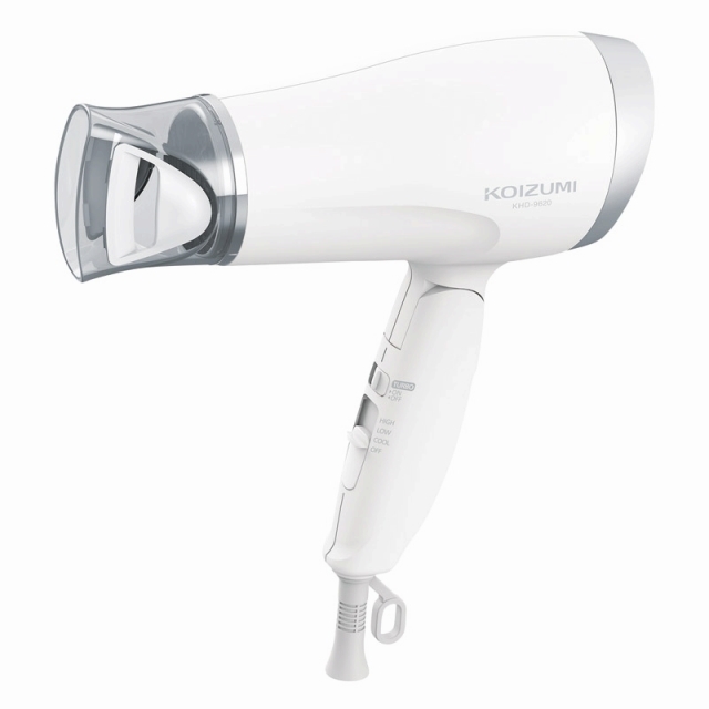 たっぷりのマイナスイオンを乾かしながら髪に届けます。しっかり風量の1.3m3/分で、長い髪の女性も素早く乾燥が可能。約400gの軽量タイプ。パワーアップノズルが風速をアップさせ、より高速で集中した風に。●安全装置:温度ヒューズ152℃●温風温度:HIGH:約100℃ LOW:約80℃ ※周囲温度30℃の場合●風量:1.3立米/分●メインスイッチ:HIGH-LOW-COOL-OFF●TURBOスイッチも搭載