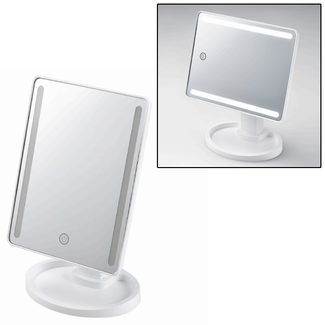 LED内蔵の大きなスクエア型ミラー。くるっと回転して縦・横の切り替えができます。ミラー内には、眩しすぎず、お肌を美しく照らすLEDライトが内蔵。