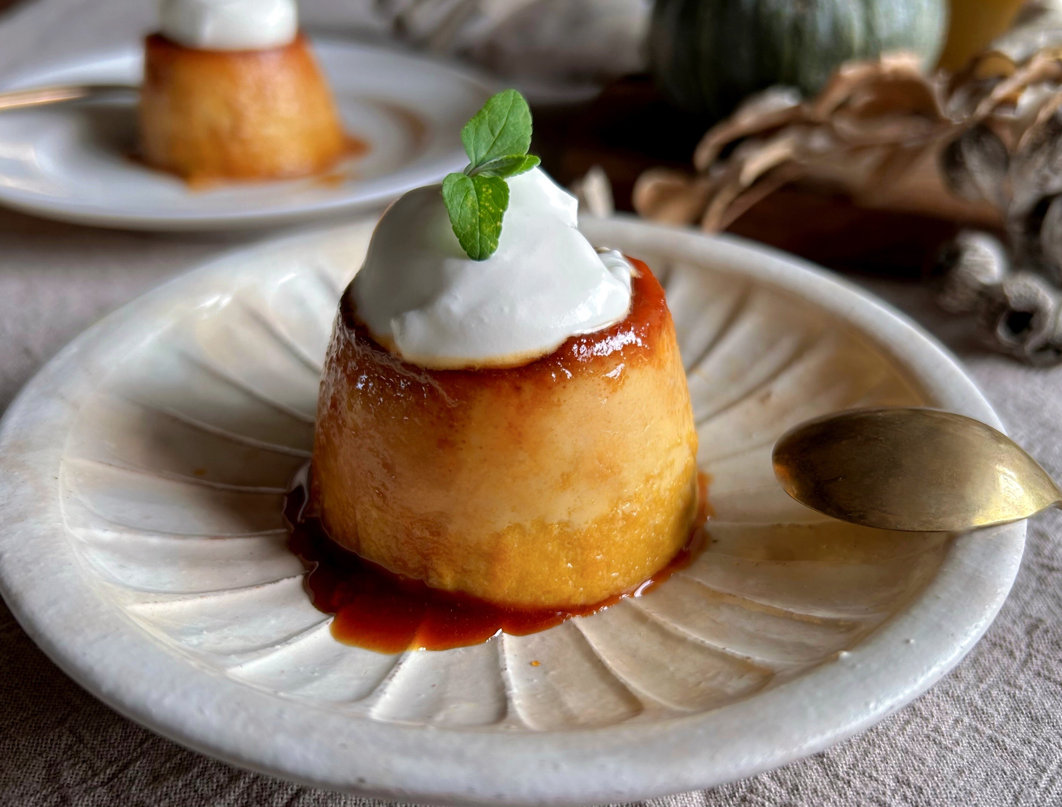 フライパンひとつで手軽に作れて、かぼちゃのやさしい甘さと、こっくり濃厚な味わいがギュッと詰まったプリンです。