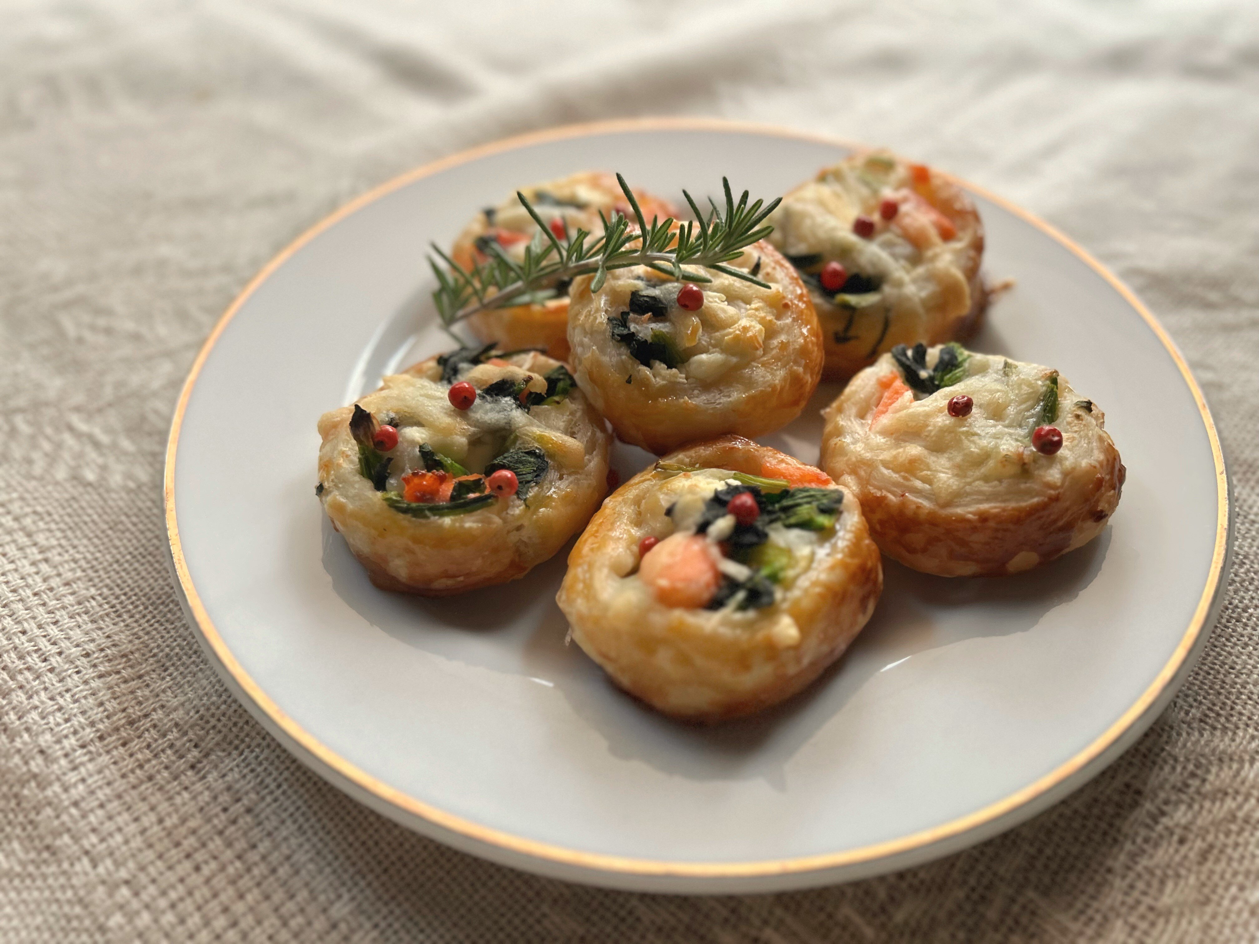 ◎サーモンとほうれん草のひと口パイ
