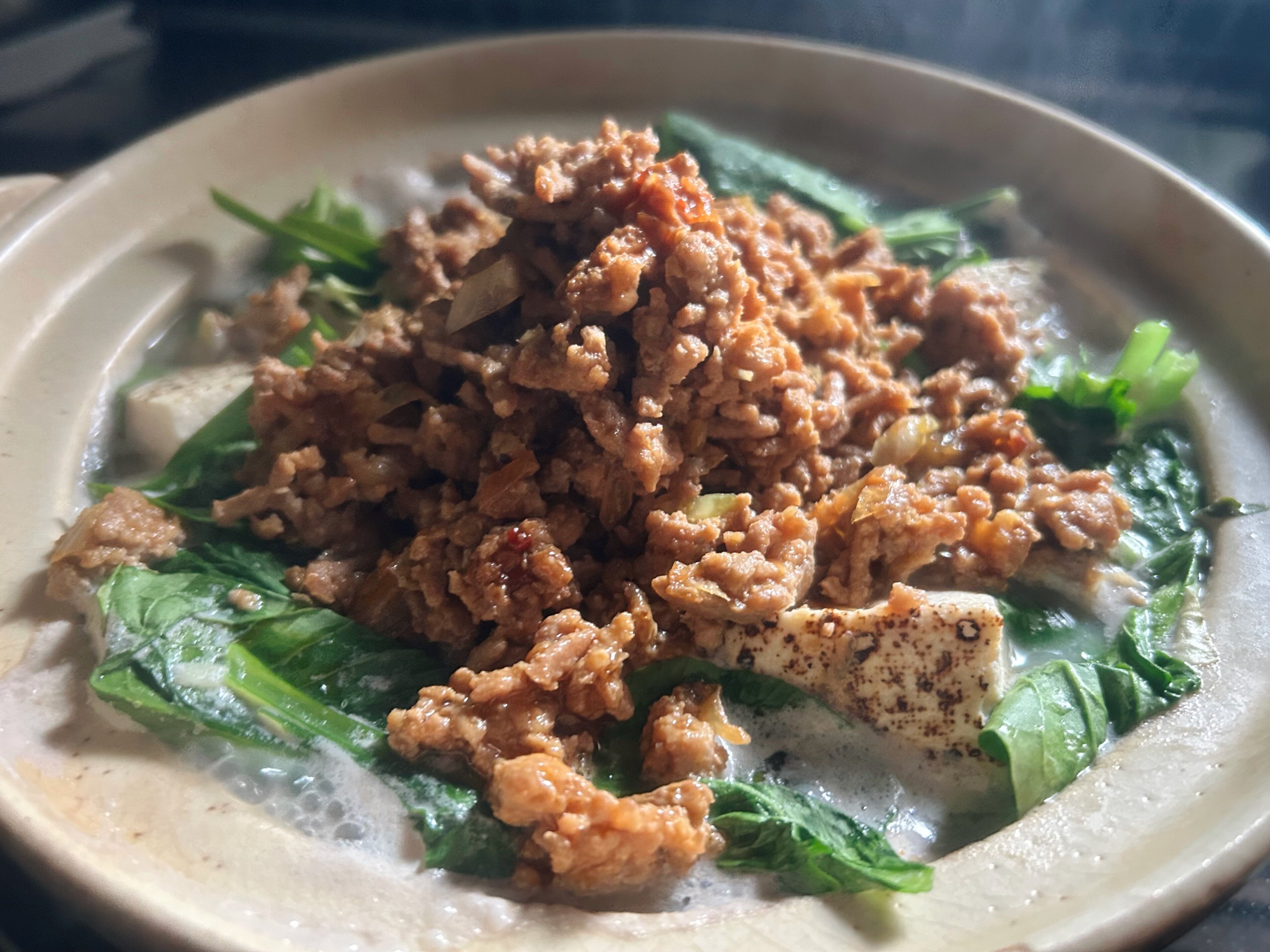 豆板醤と生姜の効いた肉そぼろがピリッとアクセントになって、食べると体がポカポカになりますよ^^