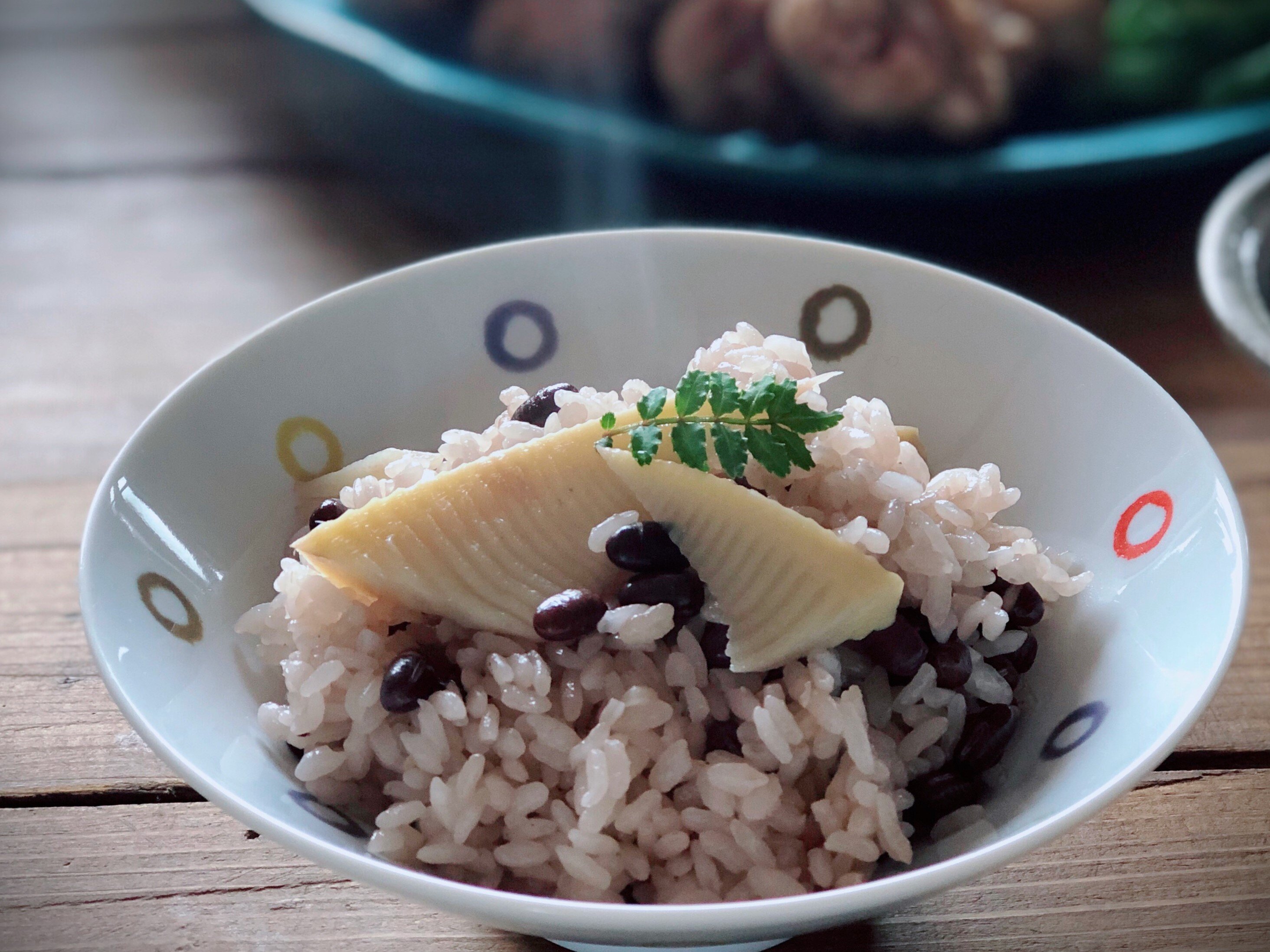 シャキッとしたたけのこと、ほっくり小豆の組み合わせがよく合う炊き込みごはんです。